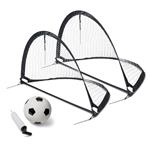 Grands buts pop-up de qualité professionnelle en fibre de verre, pour le jardin, le parc et l'entraînement. Cadre stable, filet à mailles serrées, taille compacte du but une fois pliés pour faciliter le transport. Parfaits pour les petits matchs, les exercices techniques et l'école. Dimensions: 155 x 86 x 86 cm. Livraison: 2 buts avec piquets, 1 ballon de football, 1 pompe à aiguille et sac de transport pratique. Matériau: piquets professionnels en fibre de verre, filet en polyester. Dès 3 ans.