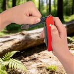 Couteau de poche junior avec croix suisse, lame arrondie, scie à bois et autres outils