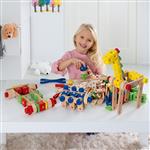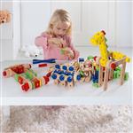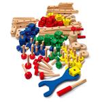 Il gioco delle costruzioni col sistema a vite, che stimolando la fantasia e la creatività induce a ogni tipo di scoperte e di creazioni personali. 180 grossi elementi in legno, ideali per le mani dei bambini, con pratico attrezzo in legno.