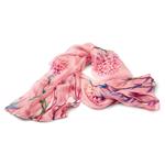 Stola rosa con ortensie stampate, in seta 100%. Dimensioni: ca. 172 x 65 cm.
