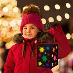 Kit completo per 1 lampioncino di ca. 14 x 20 cm, composto di: 1 lampioncino fustellato «Stelle» con fondo e coperchio in cartoncino fotografico nero, 1 archetto per lampioncino e le apposite istruzioni. Compresa nel kit anche l'apposita bacchetta elettrica in plastica, lunga 42 cm, funzionante con 2 batterie AA (non comprese).