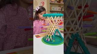 Per promuovere la motricità fine nei più piccoli, ecco il gioco di abilità che richiede facoltà di combinazione e capacità di previsione. Chi riuscirà a estrarre il numero maggiore di bacchette facendo cadere le palline avversarie? Canestro di 27 cm (⌀ 21 cm) in asticelle di bambù con bordura tessile di sicurezza, base antisdrucciolo in feltro, 16 palline variopinte di bambù e 20 bacchette di bambù con contrassegni colorati. Per 2–4 giocatori a partire dai 3 anni. Attenzione: prodotto inadatto per bambini sotto i 3 anni (parti piccole ingoiabili).