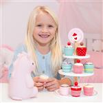 «Dolciumi» squisiti per la cucina giocattolo e per giochi di ruolo in festicciole di compleanno, tè con amichetti e così via. Mensola (ca. 29 x 19 cm) con 3 ripiani e impugnatura con disegno romantico di teiera, più 9 tipi diversi di pasticcini (ognuno ca. 4,5 x 4,5/6 cm).