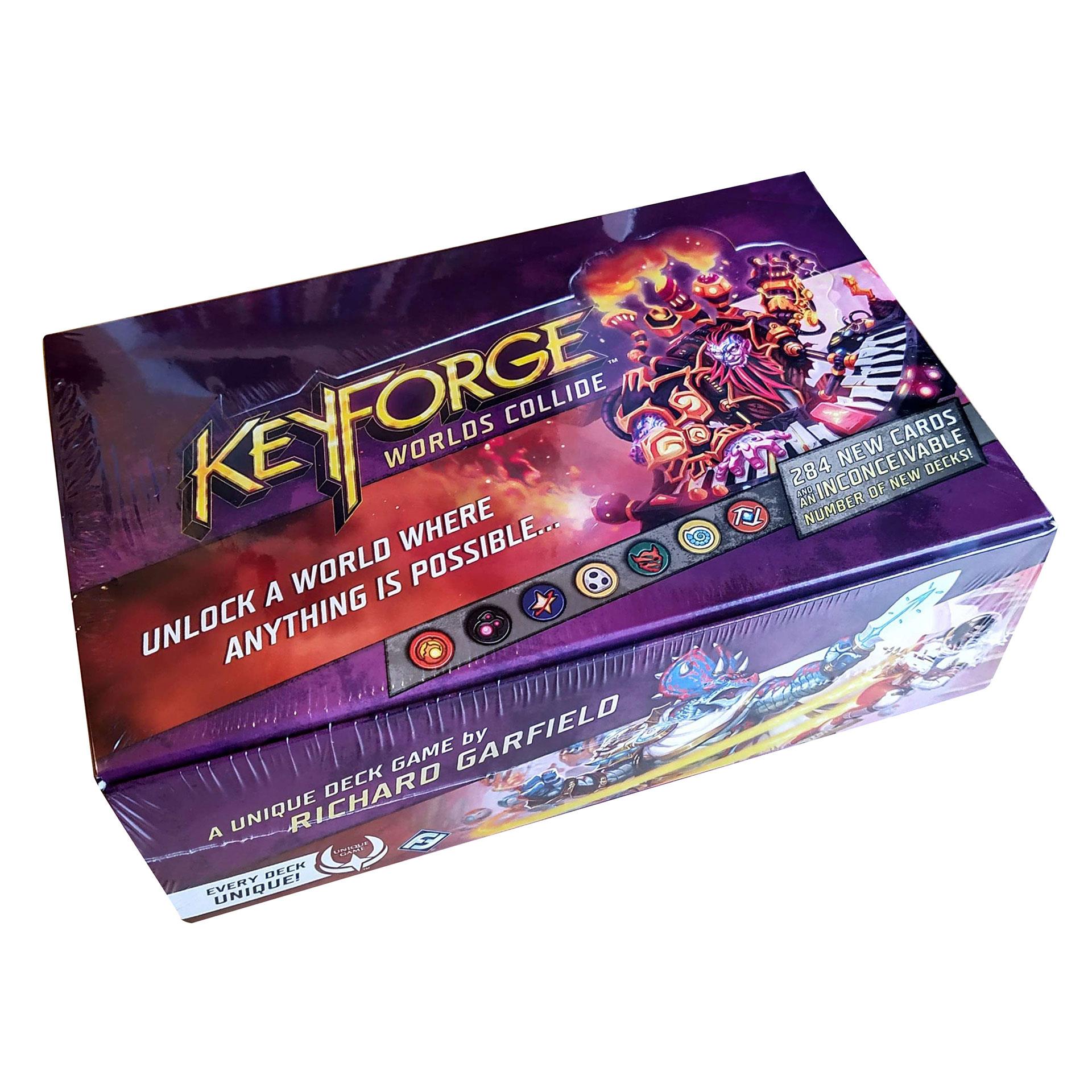 Erschliesse eine Welt, in der alles möglich ist! Zwei neue Häuser treten in den Kampf ein KeyForge – Worlds Collide enthält 284 neue Karten, die einen völlig neuen Pool an einzigartigen Decks schaffen, die du entdecken, erforschen und meistern kannst. Ein Deck pro Spieler ist alles, was du brauchst, um mit Keyforge zu beginnen.