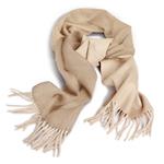 Sciarpa morbida in cachemire 100%, beige. Leggera, calda e combinabile in più modi, è ideale per la vita di tutti i giorni come per il business. Le fini frange le danno un tocco di classicità, la lavorazione pregiata assicura un comfort gradevole e un luccichio discreto. Dimensioni 170 x 30 cm, peso ca. 130 g.