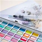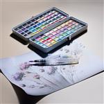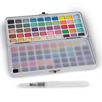 La tavolozza di pregio per realizzare quadri, bigliettini o lettering: 100 acquerelli Velazquez dal colore intenso per artisti (anche metallico, neon e pastello) in box metallico maneggevole, più pennello con serbatoio. Ideale anche in viaggio. Dai 14 anni.